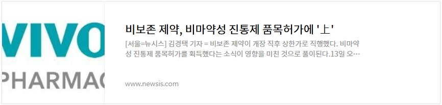 비보존 제약의 미래는 밝다고 할 수 있습니다. ' 어나프라주(성분명 오피란제린) '이 성공적으로 신약으로 승인되었기 때문에, 회사의 매출은 크게 증가할 것으로 예상됩니다.