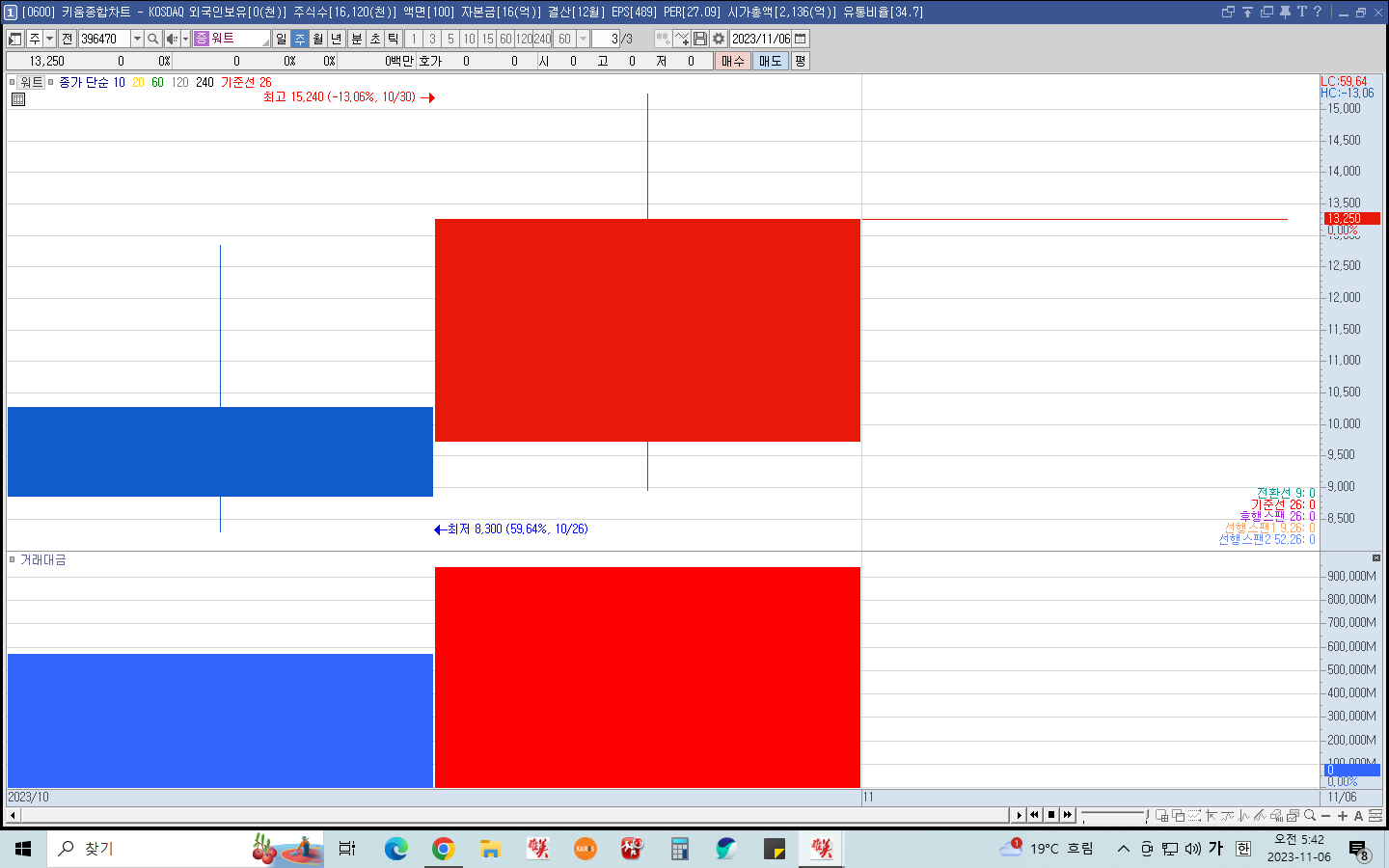 아래 워트의 주봉 차트를 보면 상장 이후 2번째 주에 기준봉이 형성되었다.