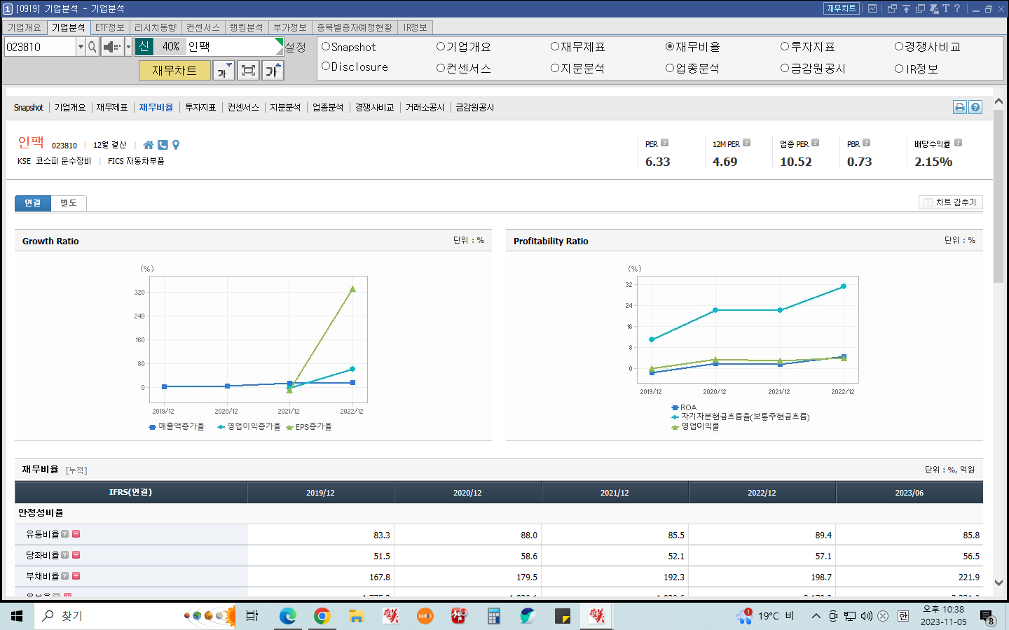 향후 전기차 시장이 확대됨에 따라 인팩의 매출액도 늘어날 것으로 보인다. 그에 따라 주가도 상승할 것으로 예측된다. 다만 유동비율이 적기 때문에 주가의 변동이 클 것 같다. 8,400원 이하에서 1차 매수하고 7,600원 이하에서 매수한다. 만약 일봉 20선 돌파하면 눌렸을 때 도 매수한다. 매도는 20% 수익에 자동 매도 걸어 놓는다. 현재 시장이 저점을 찍은 것으로 판단되며 11월 12월 시장이 상승할 것으로 예측된다. 따라서 연봉에서 좋은 흐름을 보여줬던 종목들이 다시 반등이 나올 것으로 기대된다. 하지만 가장 중요한 것은 한 종목에 모든 자산을 투자해서는 안된다. 자신의 주식 경력이 적고 수익률이 낮을수록 더욱더 분할해서 투자해야 한다. 자산이 적다면 최소 5 종목으로 나눠서 투자한다.