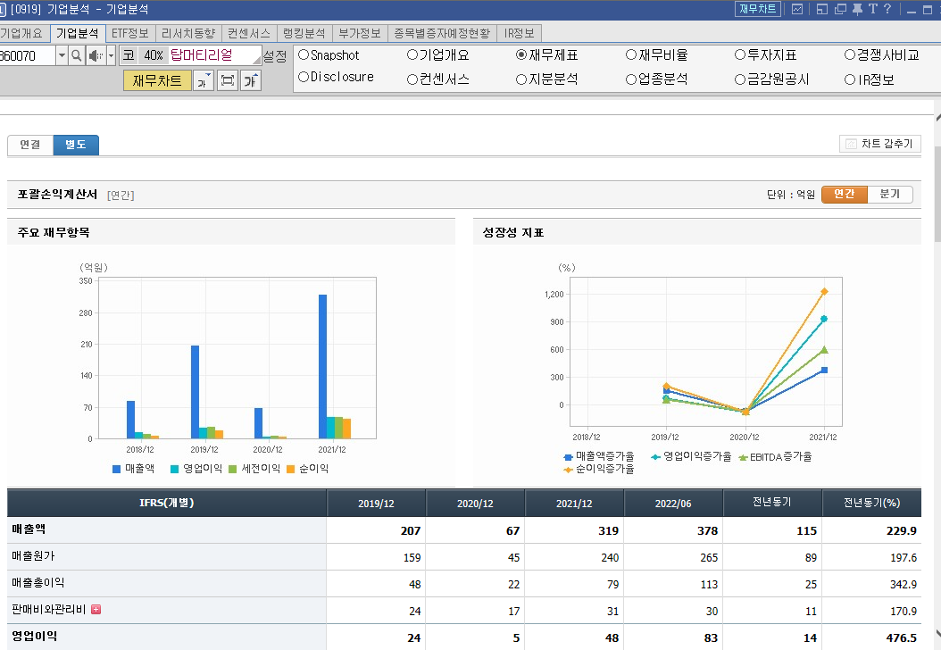 주가 상승 원인에서 설명했듯이 위 재무제표를 보면 2022년도 6월까지의 매출이 이미 2021년도 전체 매출을 넘은 것을 볼 수 있습니다. 시스템 엔지니어링 사업으로 발생한 이익과 올해 10월 18일 코스닥에 상장하면서 마련된 자금으로 미래 주력 사업인 양극재 사업 투자를 늘리면서 앞으로 추가적인 매출 증가도 기대됩니다. 양극재 사업 투자로는 제1,2기 생산라인을 구축할 예정입니다. 제1기는 2023년 하반기 공사가 마무리될 예정이고 제2기는 2024년 중순까지 완공될 예정입니다.