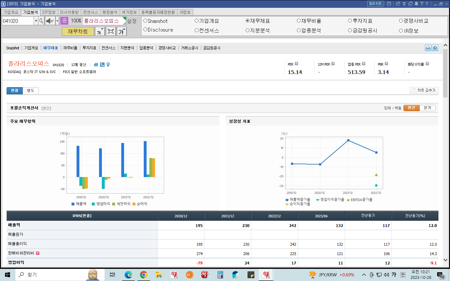 아래 폴라리스오피스의 재무제표를 보면 2020년 이후로 매출이 꾸준히 성장하고 있다.