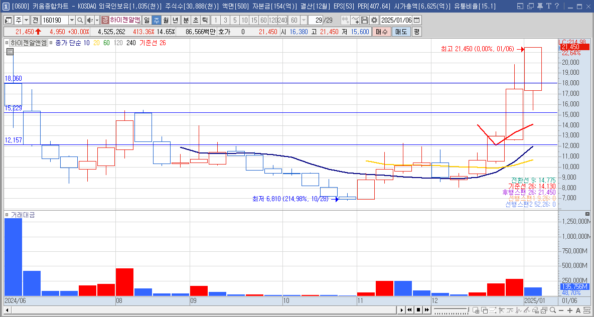 하이젠알앤엠의 주가는 최근 몇 주간 급등세를 보였습니다.