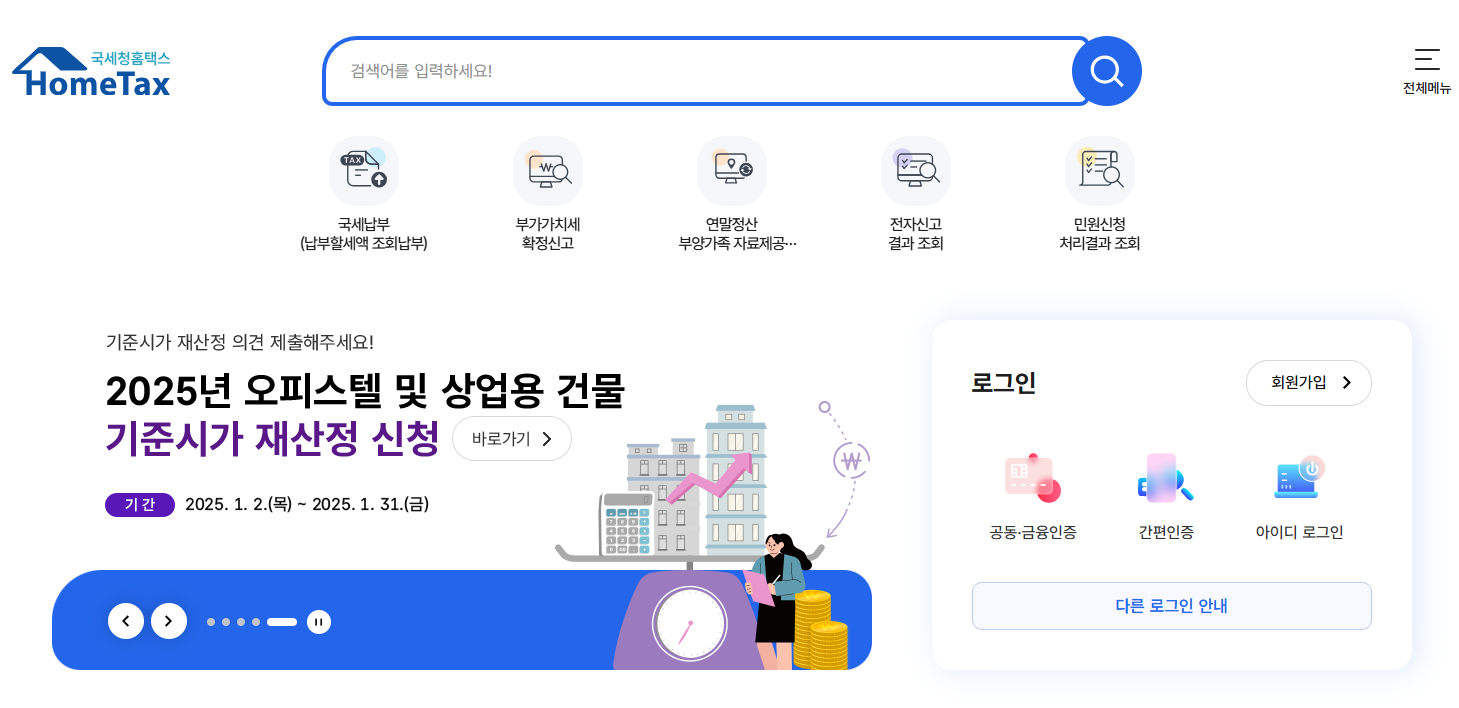 - 홈택스 홈페이지에 접속합니다.
