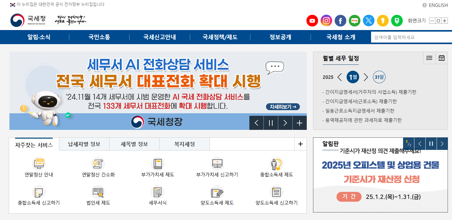 추가적인 정보는 아래 국세청 홈페이지를 참고하시기 바랍니다.