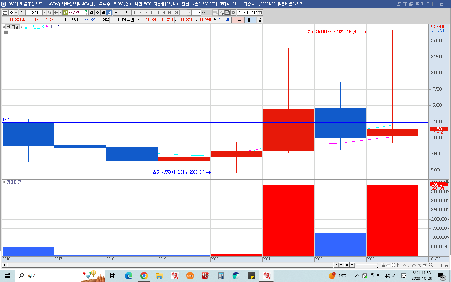 아래 AP위성의 연봉차트를 보면 2021년 전고점을 첫 돌파하는 기준봉이 발생했다.